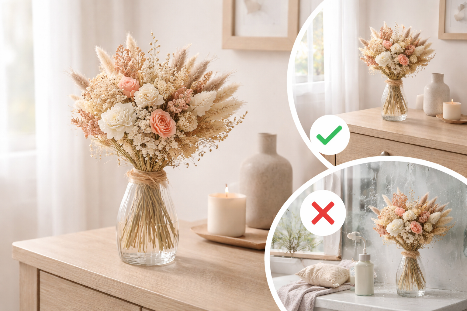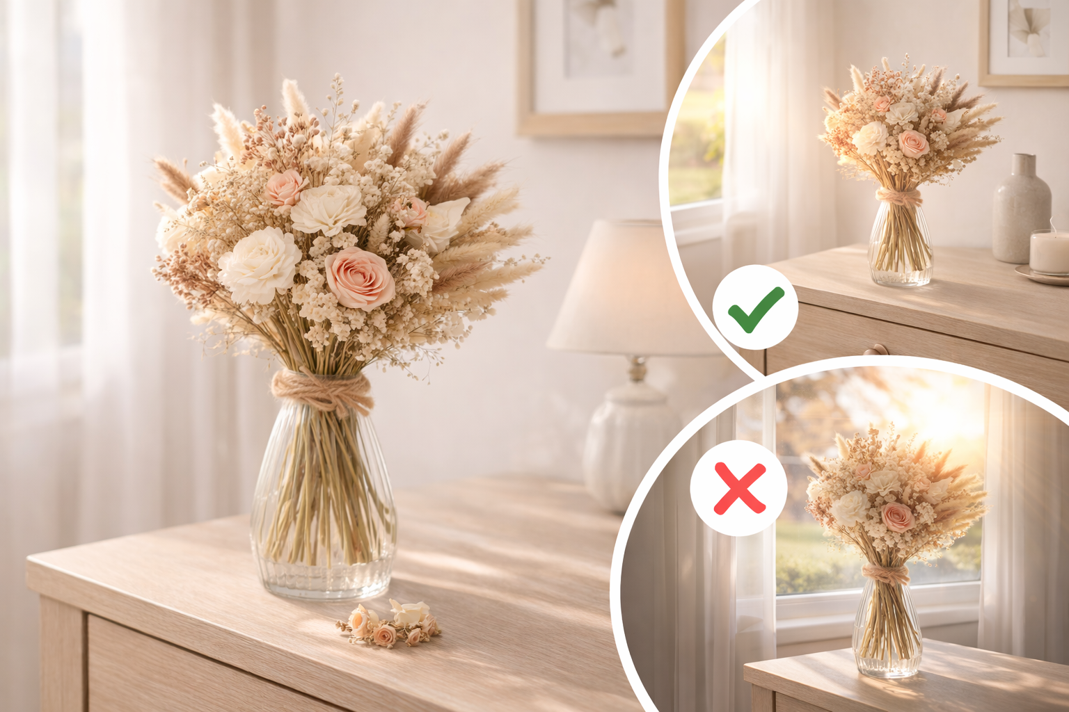 Les fleurs séchées sont naturellement durables, mais quelques gestes simples permettent de préserver leur beauté au fil du temps.